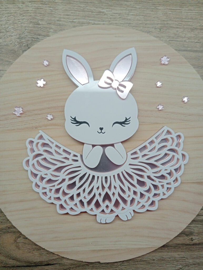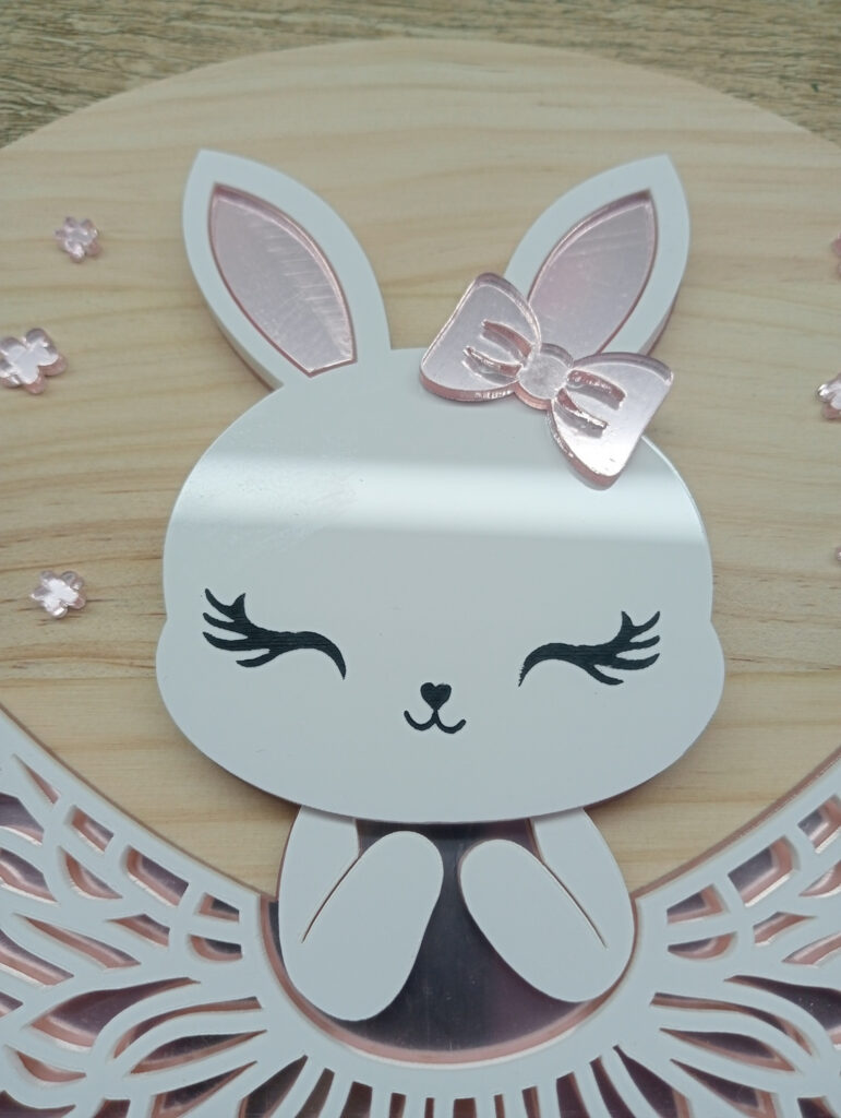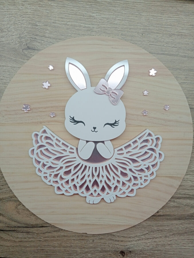 Una bailarina muy dulce. Realizada en acrílico blanco y rosa espejo. Ideal para decorar la habitación de una princesita. Se puede añadir un nombre. ¿Cual pondrías tu?.